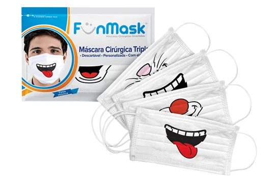 A empresa Fun Mask, possui em seu portfólio Máscaras Divertidas de proteção com estampas diversas: de sorrisos e além de contar também com uma linha voltada para a personalização para clinicas, hospitais e campanhas publicitárias.